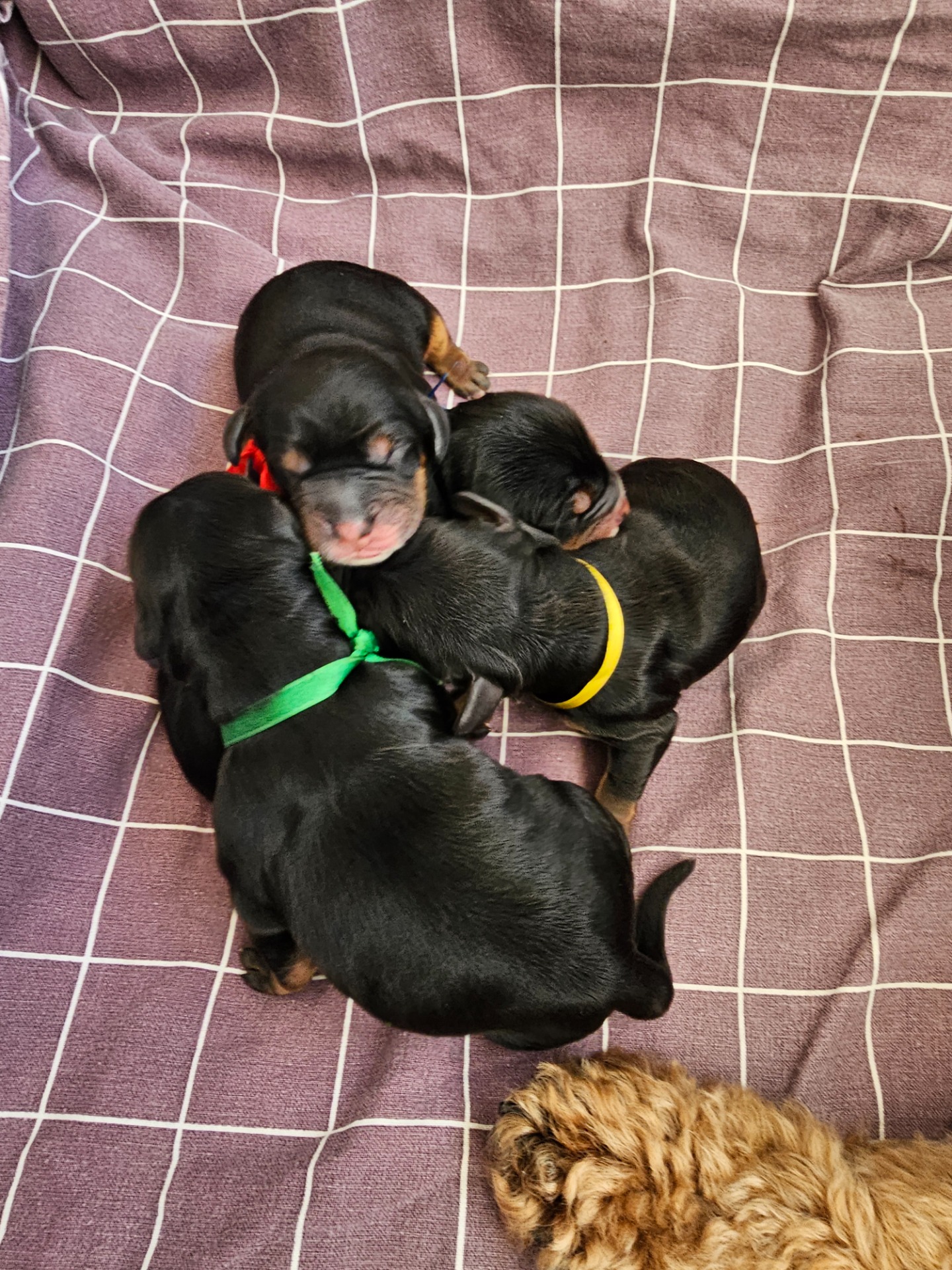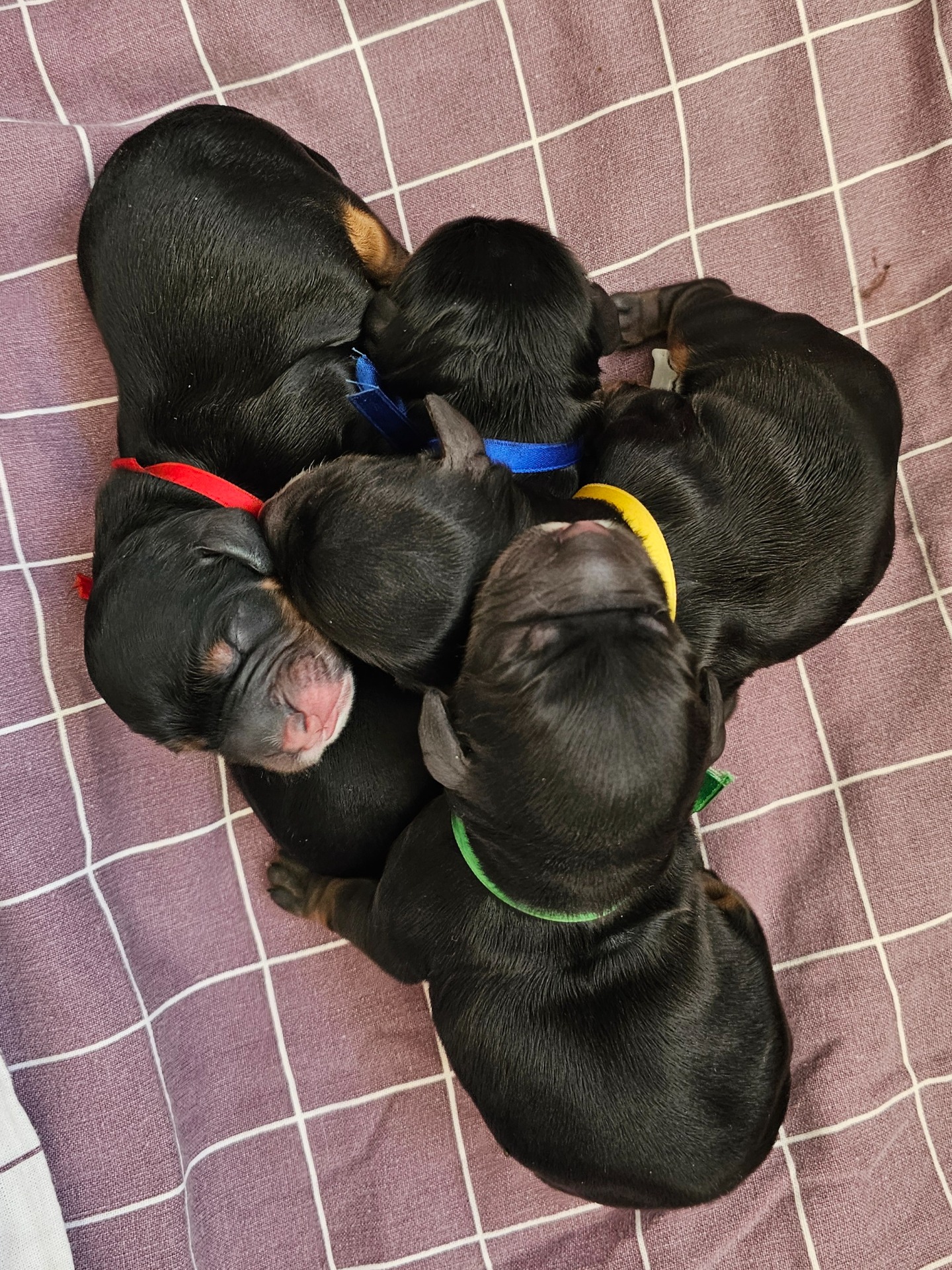 Så resultatet blev 5 hanar och 1 tik. Alla är black and tan med vita tecken - supersöta 🥰